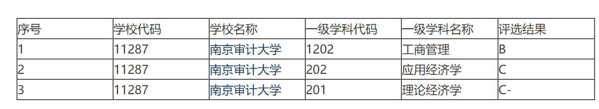 在教育部的第四轮学科评估中,南审只有3个学科参评,其中成绩最好的是工商管理,是个B;应用经济学、理论经济学均为C类。